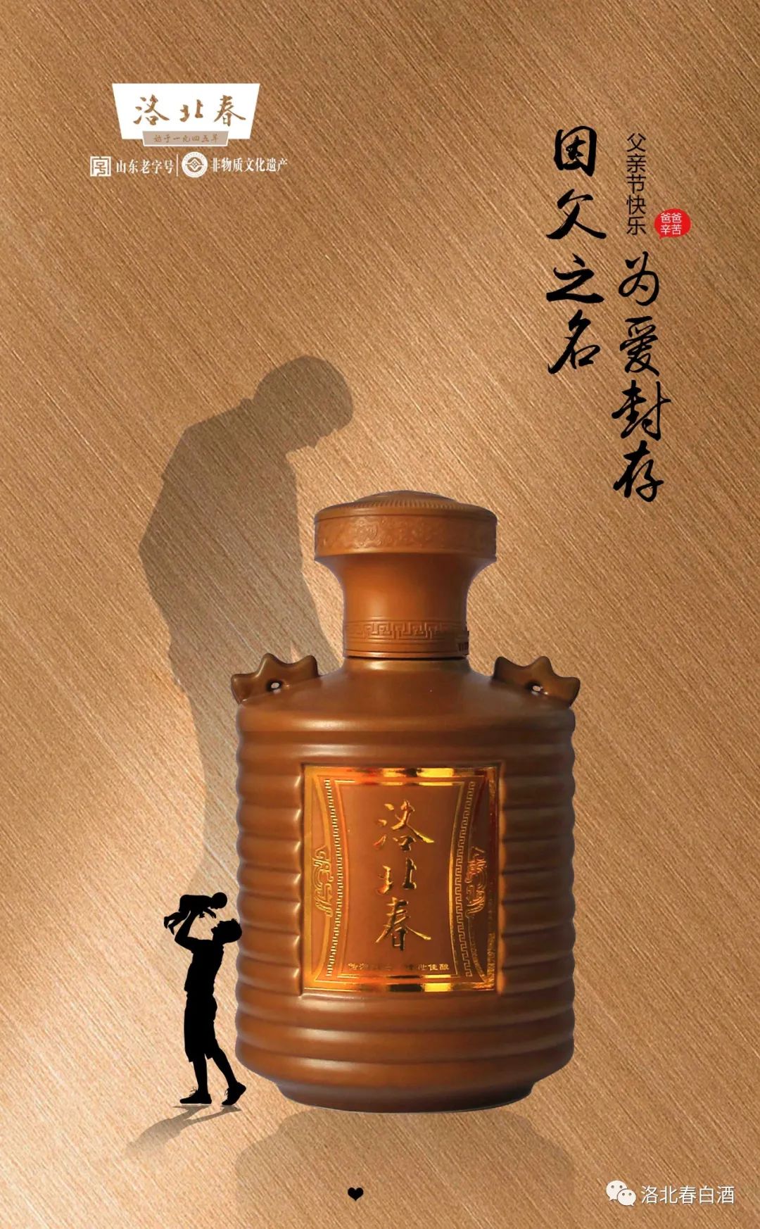 父愛如酒,醇厚綿長,以父之名,為愛封存。父愛象一場春雨,一首清歌,潤物無聲綿長悠遠。父愛更如洛北春的這壇酒,只有當(dāng)孩子經(jīng)歷了時間的歷練,才能真正懂得父愛這壇“老酒”有多醇香!碰杯之間,父親給孩子,傳達的是百味人生,孩子給父親,表達的是健康期許。